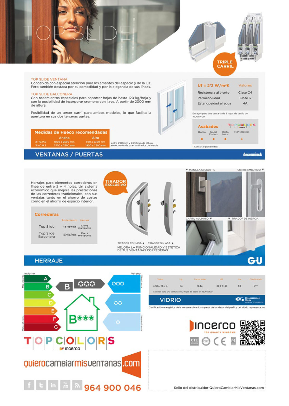 Con rodamientos especiales para soportar hojas de hasta 120 kg/hoja y con Ia posibilidad de incorporar cremona con llave a partir de 2 m de altura