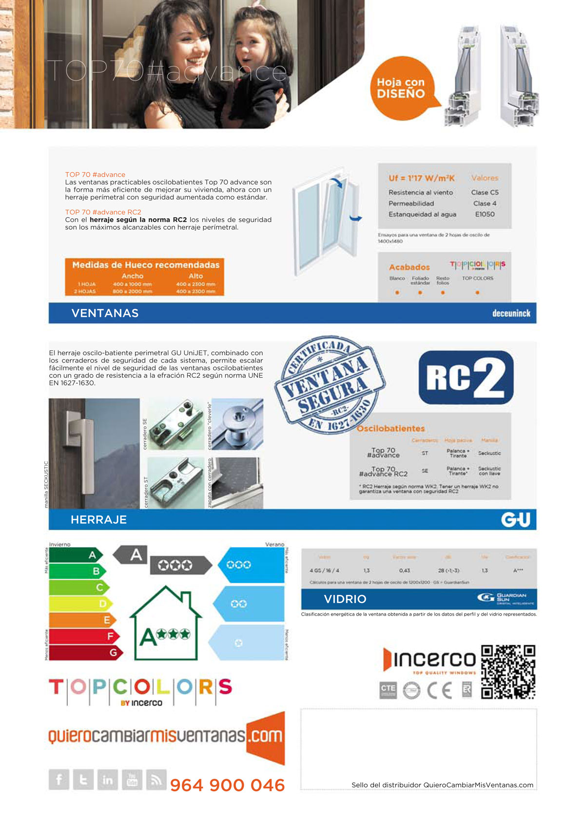 Las ventanas practicables oscilobatientes Top 70 advance son la forma más eficiente de mejorar su vivienda ahora con un herraje perímetral con seguridad aumentada como estándar.
