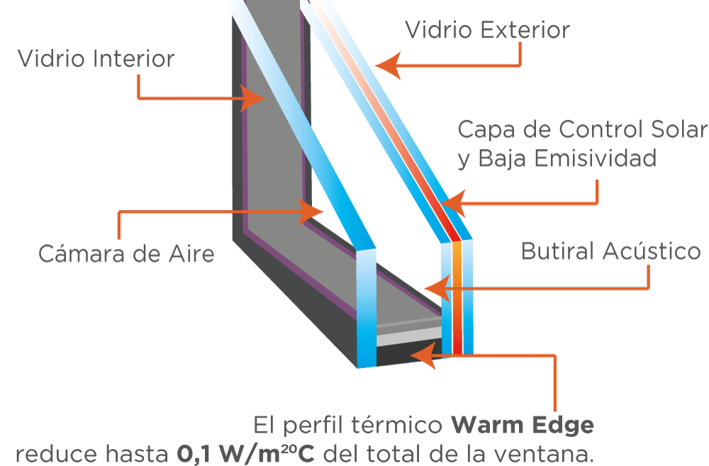 Aislamiento térmico para invierno y verano.Necesitamos una Baja emisividad para bajar el coeficiente U. Logrando así evitar pérdidas de energía.